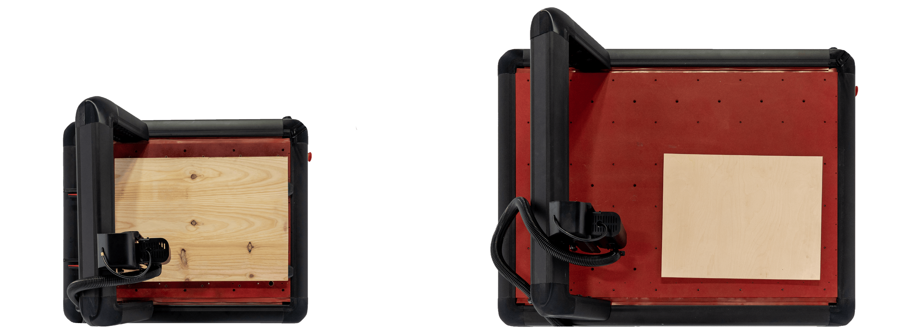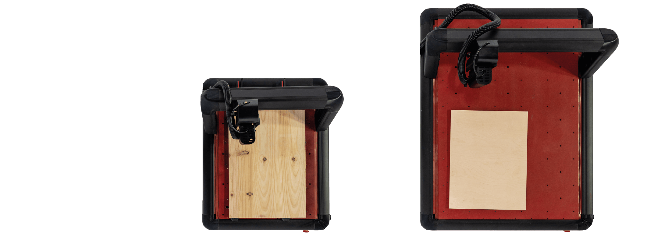 Modelo S (700x500 mm) o Modelo M (1.100x750 mm). Elige el que mejor se adapte a tus necesidades de fabricación, espacio de taller y presupuesto.